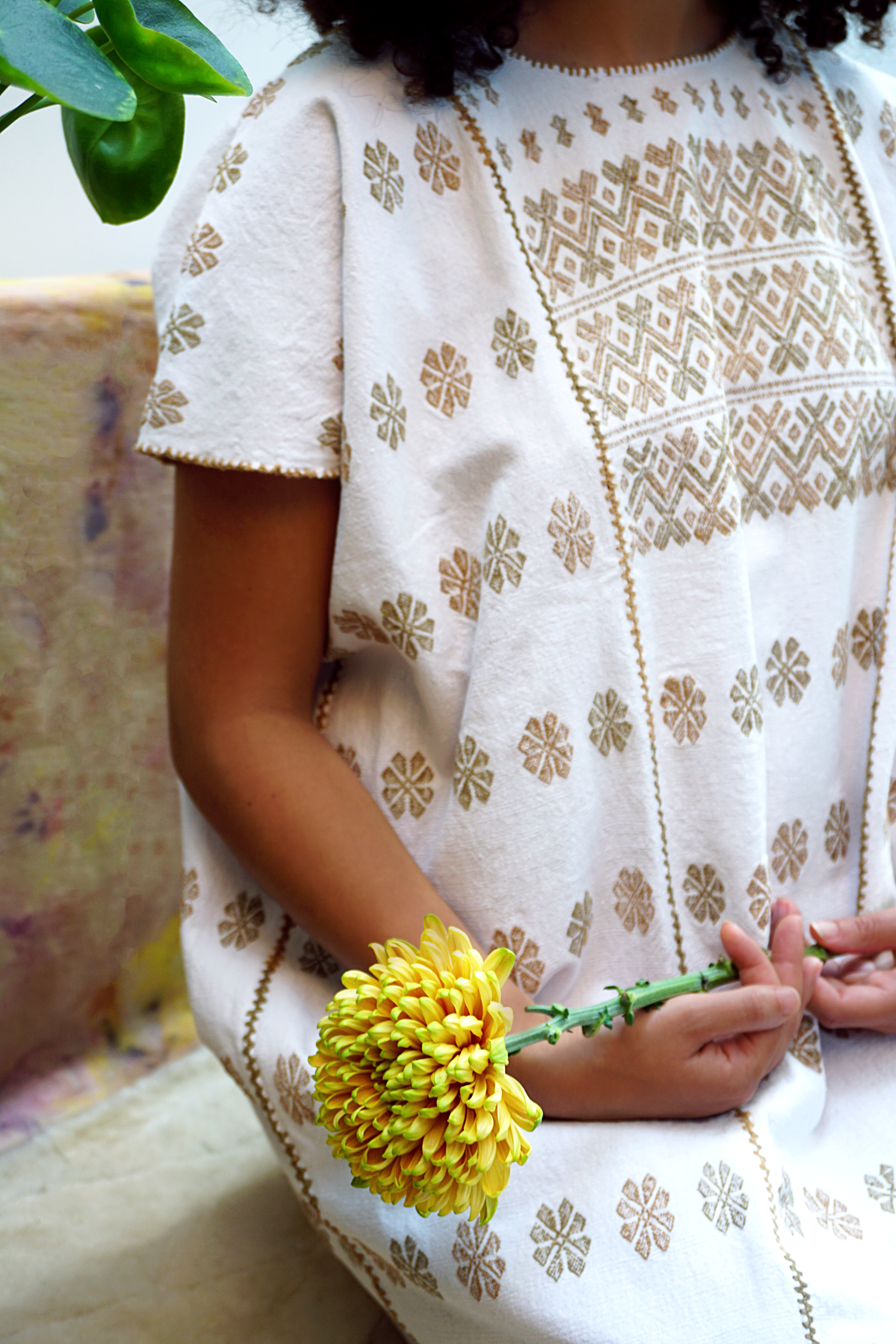 A Huipil is a loose-fitting tunic, usually made of two or three rectangular pieces of cloth, joined with stitches, ribbons or strips of cloth. It’s a piece of clothing characteristic to the indigenous communities throughout the various regions of Mexico and its characteristics usually indicate the weavers' ethnicity and community.